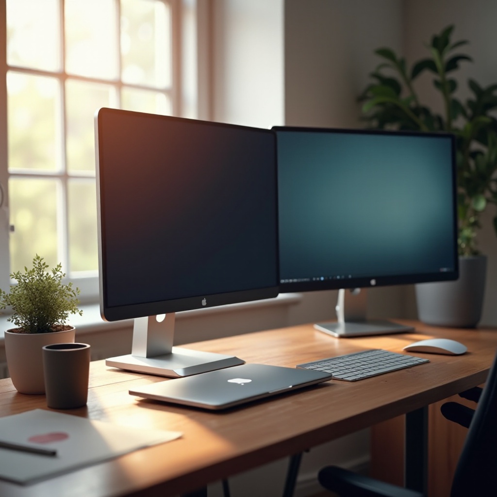 Pengaturan meja yang tertata dengan benar sangat penting tidak hanya untuk estetika, tetapi juga untuk meningkatkan produktivitas dan mengurangi ketidaknyamanan fisik. Menggunakan laptop dan monitor meningkatkan ruang layar, secara dramatis meningkatkan efisiensi alur kerja.